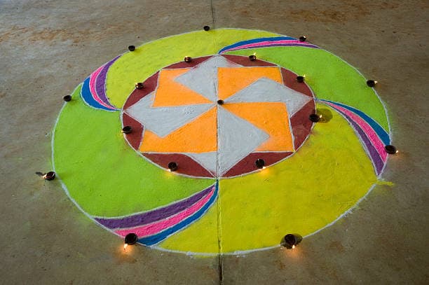 अगर आप इस नवरात्रि माता रानी के स्वागत के लिए रंगोली बनाना तो चाहती हैं, लेकिन आपके पास ज्यादा समय नहीं है और आपके पास रंगों की भी कमी है, तो इस प्रकार की रंगोली डिजाइन आपके लिए अच्छा विकल्प हो सकती है, इन्हें बनाना आसान होता है और यह देखने में भी बहुत सुंदर लगती हैं.