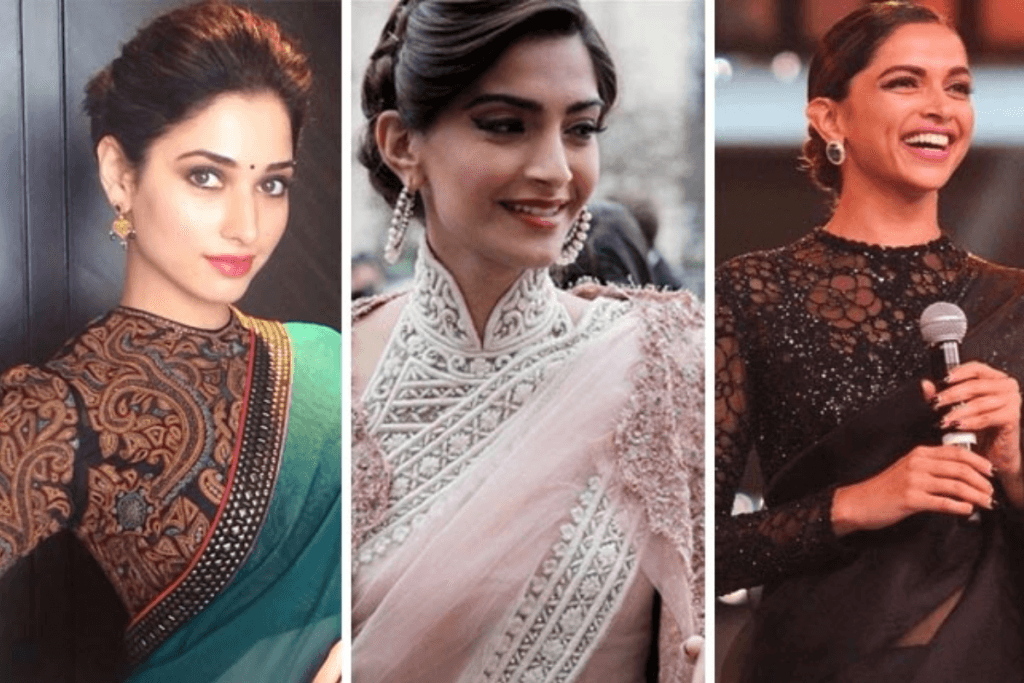 साड़ी का लुक ब्लाउज़ पर भी बहुत निर्भर करता है. नवरात्री के मौके पर आप अपने ब्लाउज़ के साथ एक्सपेरिमेंट कर सकती हैं. जैसे कि बैकलेस ब्लाउज़, फुल स्लीव ब्लाउज़, या रफल स्लीव ब्लाउज़. इसके अलावा, अगर आप कुछ ज्यादा ड्रमैटिक चाहती हैं, तो शीयर या नेट का ब्लाउज़ पहन सकती हैं. यह आपके लुक में एक ग्लैमरस टच जोड़ेगा.