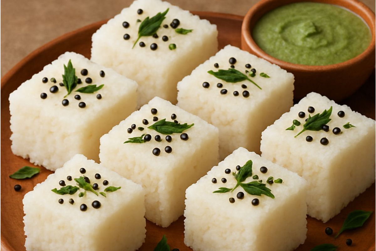 - परोसें: ढोकले को ठंडा होने पर चौकोर टुकड़ों में काटें और ऊपर से गरम तड़का और कटा हुआ हरा धनिया डालकर परोसें.