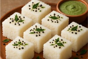 - परोसें: ढोकले को ठंडा होने पर चौकोर टुकड़ों में काटें और ऊपर से गरम तड़का और कटा हुआ हरा धनिया डालकर परोसें.