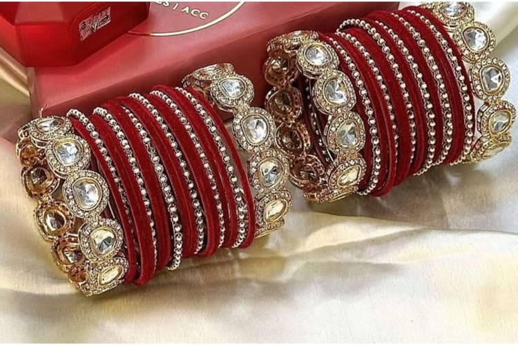 मखमल की चूड़ियां (Velvet Bangles): मखमल की चूड़ियां अपने सॉफ्ट और रिच लुक के लिए जानी जाती हैं. लाल मखमल पर सुनहरे या सिल्वर काम से सजी ये चूड़ियां आपके हाथों को एक बहुत ही सोफिस्टिकेटेड और क्लासी लुक देती हैं. ये चूड़ियां हर तरह के कपड़े के साथ खूब फबती हैं.