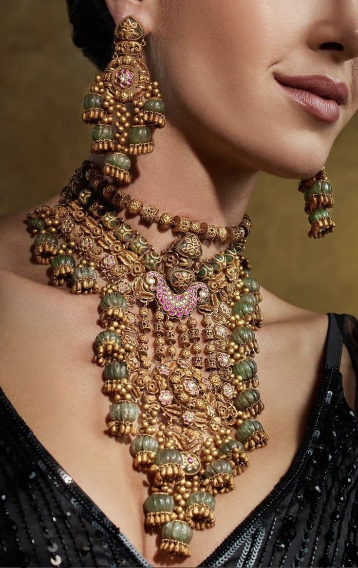 टियरड नेकलेस का डिज़ाइन हर लड़की के ज्वेलरी कलेक्शन का हिस्सा होना चाहिए. इसमें मल्टी-लेयर्ड चेन होती है, जो आपकी गर्दन को खूबसूरती से फ्रेम करती है. यह डिज़ाइन आपको एक ग्लैमरस लुक देता है, और इसे आप वेस्टर्न ड्रेस, गाउन या इंडो-वेस्टर्न पहनावे के साथ पहन सकती हैं. इसके साथ स्लीक हेयरस्टाइल और लाइट मेकअप परफेक्ट होगा.