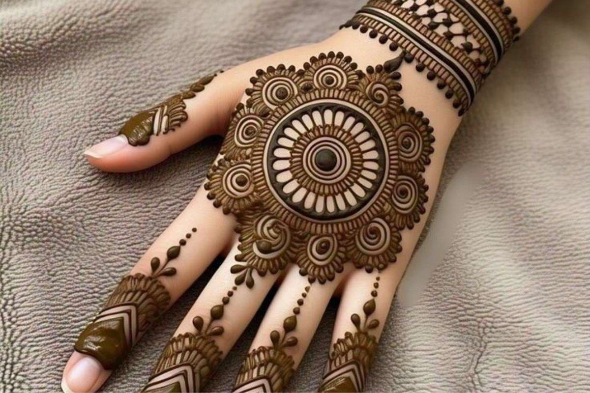 मिनिमलिस्टिक मंडाला आर्ट (Mandala Art): इसमें हथेली के बीचों-बीच एक खूबसूरत सा गोल चक्र बनाया जाता है और उंगलियों के पोरों को बारीक डिजाइन से भर दिया जाता है. यह उन लड़कियों के लिए बेस्ट है जो कम समय में सुंदर मेहंदी चाहती हैं.