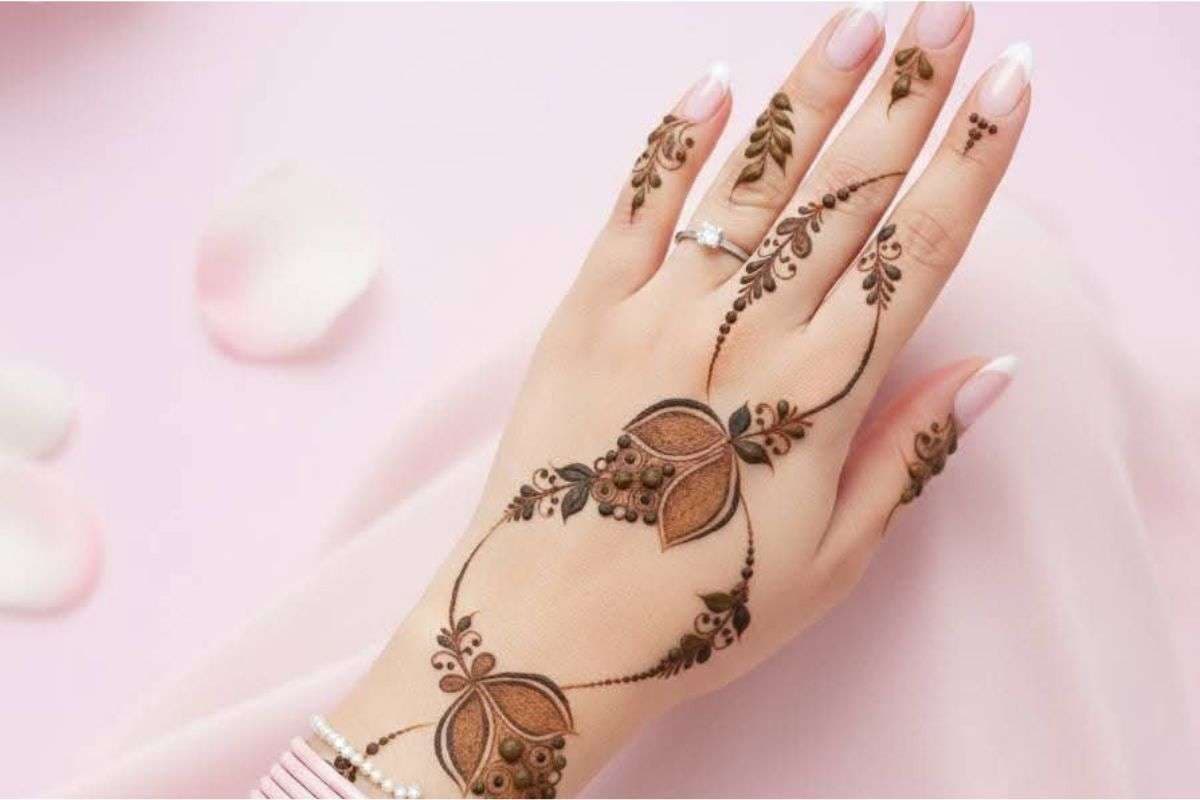 मिनिमलिस्टिक फ्लोरल बेल (Minimalist Floral Bail) : यह डिजाइन उन लड़कियों के लिए परफेक्ट है जो बहुत भारी मेहंदी पसंद नहीं करतीं है. इसमें एक बारीक बेल तर्जनी उंगली से शुरू होकर कलाई तक जाती है. 2026 में छोटे गुलाब और पत्तियों वाले बारीक पैटर्न बहुत ज्यादा ट्रेंड में हैं.