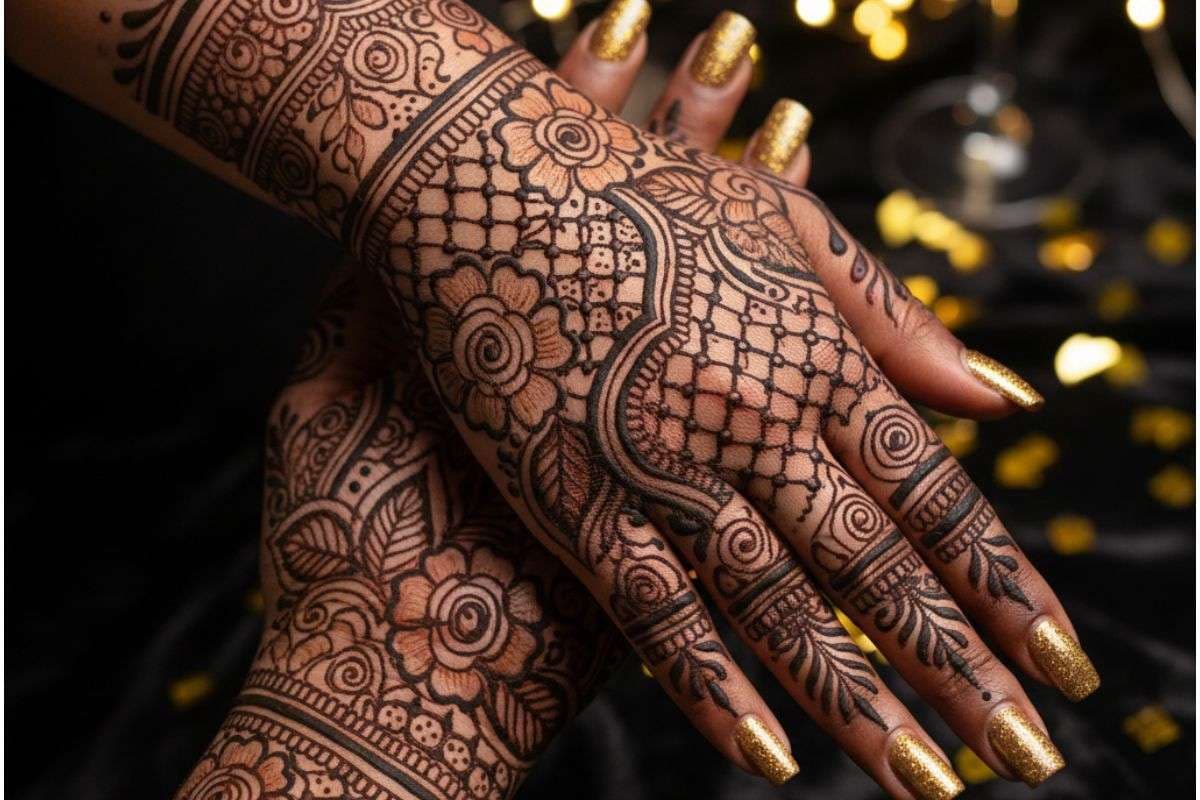 जाल और बूटा वर्क (Jali and Buta Work): इसमें अरबी स्टाइल के फूलों के साथ बारीक जाल बनाया जाता है. यह डिजाइन देखने में बहुत हैवी लगता है लेकिन लगाने में काफी आसान है.न्यू ईयर के एथनिक लुक के लिए यह बेस्ट है.