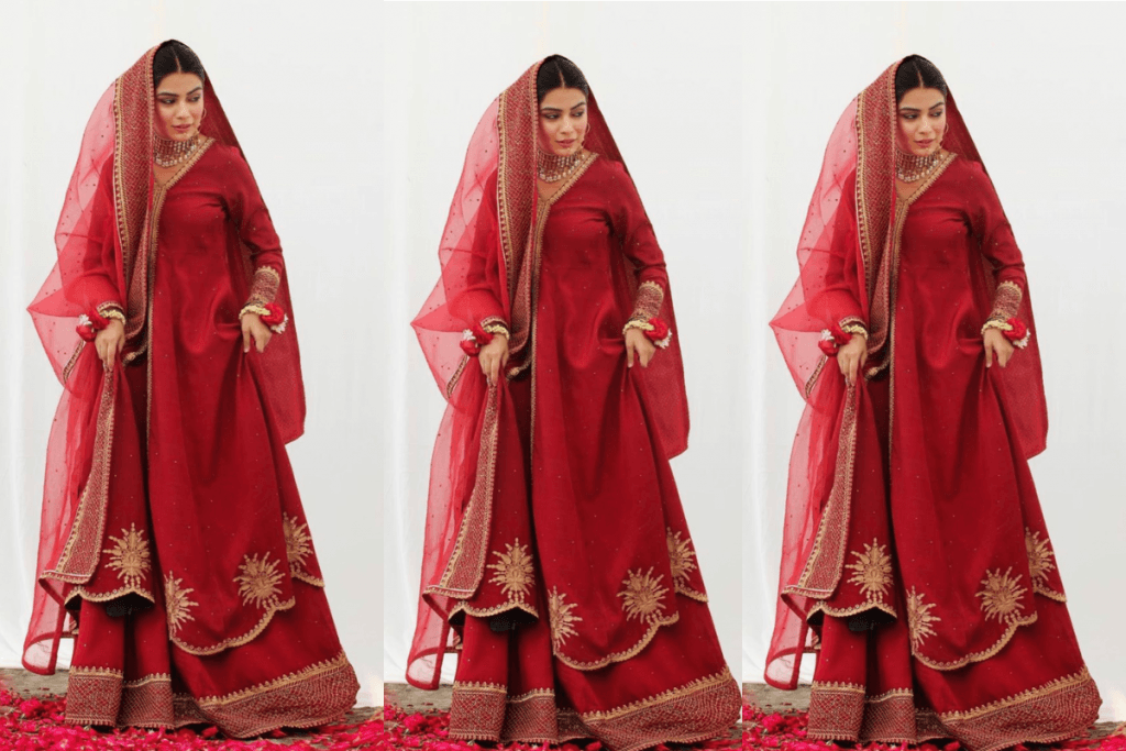 शरारा सूट का क्रेज आजकल दुल्हनों के बीच काफी लोकप्रिय है. अगर आप अपने लुक में रॉयल और ग्रैंड टच चाहती हैं, तो शरारा सूट पहनें. शादी के बाद इसे मेहंदी या रिसेप्शन जैसे छोटे फंक्शन में पहन सकती हैं. एम्ब्रॉयडरी वाले शरारा सूट पर हेवी दुपट्टा आपको शाही लुक देगा.