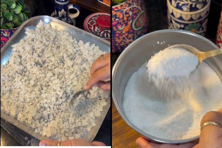- फिर मिक्सर जार में मिश्रण को डाल दें. इसमें काला नमक और नमक को डालकर बारीक पीस लें.