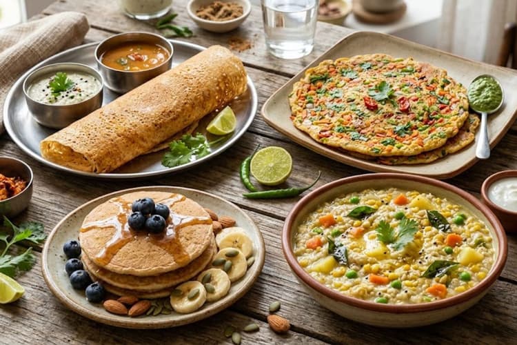 मीठा नाश्ता पसंद करने वालों के लिए ओट्स पैनकेक एक अच्छा ऑप्शन है. इसके लिए ओट्स पाउडर में दूध, चीनी और थोड़ा बेकिंग पाउडर मिलाकर बैटर तैयार करें. तवे पर थोड़ा बटर लगाकर घोल को गोल आकार में फैला दें. ऊपर से शहद, चॉकलेट सिरप या ड्राई फ्रूट्स डालकर सर्व करें.