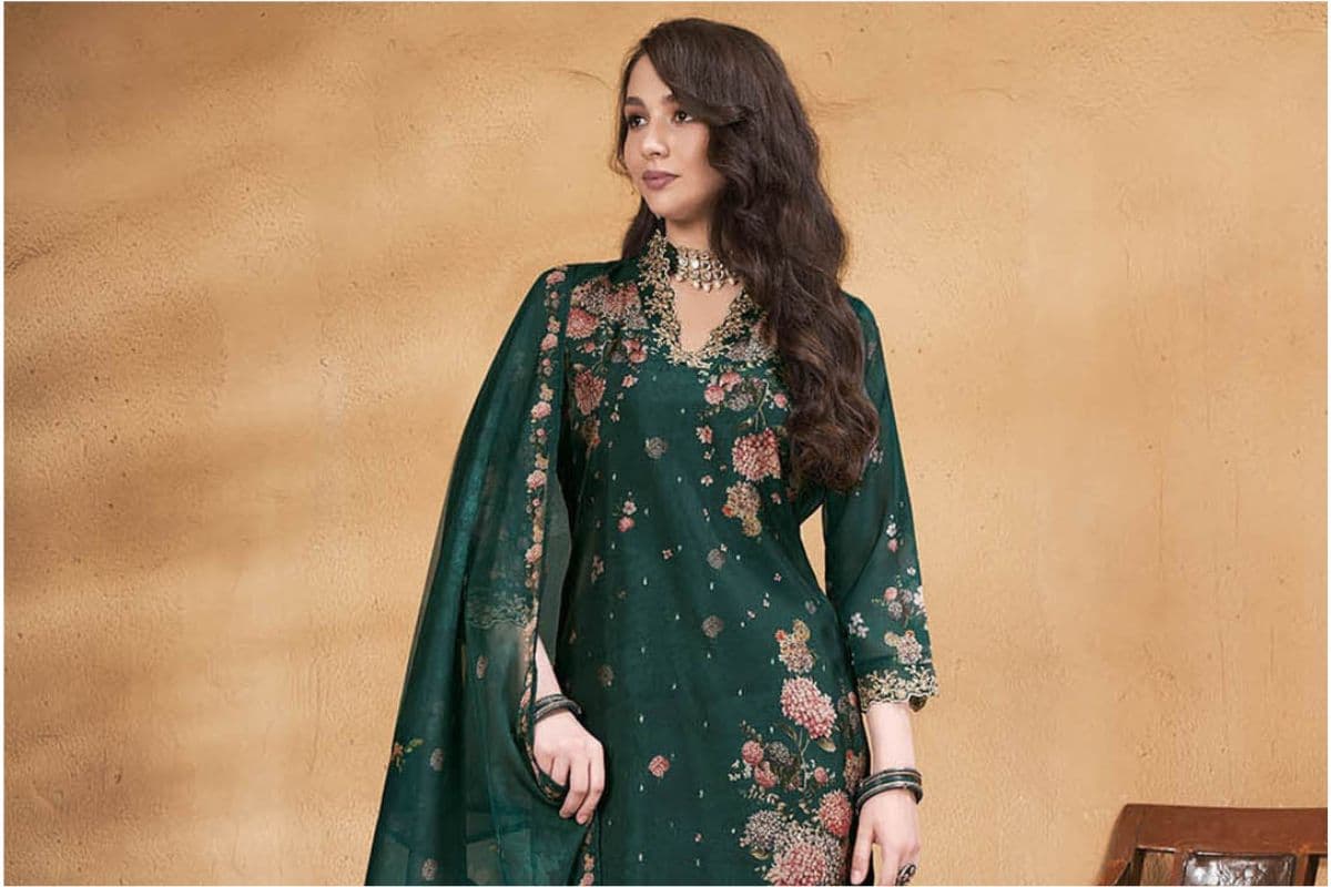 एम्ब्रॉयडरी वर्क : ऑर्गेंजा सूट पर बारीक धागे की एम्ब्रॉयडरी खासकर फ्लोरल या ज्योमेट्रिक पैटर्न में इसे एक ट्रेडिशनल लेकिन एलिगेंट लुक देती है. चिकनकारी, रेशम वर्क या जरी का हल्का काम इसे और भी शाही बनाता है.