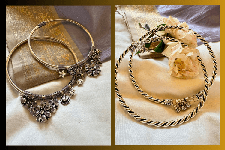 फ्लोरल नक्काशी और जर्मन सिल्वर की चमक इस डिजाइन को बेहद खूबसूरत और फेमिनिन बनाती है.