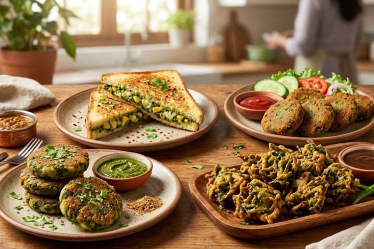 स्नैक्स में पालक टिक्की बना सकते हैं. इसे बनाने के लिए पालक को अच्छे से धोकर बारीक काट लें. इसमें उबले हुए आलू, हरी मिर्च, धनिया पत्ती, नमक और थोड़ा बेसन मिलाकर मिश्रण तैयार करें. इस मिश्रण से छोटे-छोटे टिक्की के आकार बनाएं और तवे पर डालकर सेंक लें.