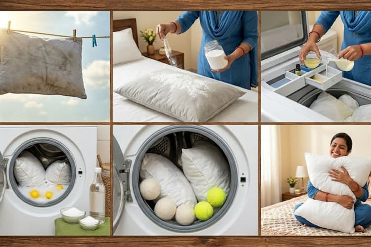 Pillow Cleaning Hacks: तकिया हमारी रोजमर्रा की जिंदगी का एक अहम हिस्सा है, जिस पर हम हर दिन कई घंटे बिताते हैं. लेकिन अक्सर हम इसकी सफाई को नजरअंदाज कर देते हैं, जिससे इसमें धूल, पसीना, बैक्टीरिया और बदबू जमा हो जाती है. गंदा तकिया न सिर्फ नींद की गुणवत्ता को खराब करता है, बल्कि त्वचा और बालों से जुड़ी समस्याएं भी बढ़ा सकता है. इसलिए तकिये की नियमित सफाई बेहद जरूरी है. अच्छी बात यह है कि कुछ आसान घरेलू तरीकों से आप अपने तकिये को बिना ज्यादा मेहनत के साफ और फ्रेश रख सकते हैं. ये छोटे-छोटे हैक्स आपकी सेहत और आराम दोनों को बेहतर बनाने में मदद करते हैं.