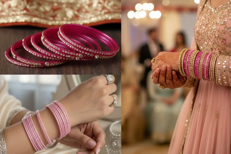 अगर आप हल्की और यूनिक चूड़ियां पहनना चाहती हैं, तो सिल्क थ्रेड पिंक बैंगल्स एक अच्छा ऑप्शन है. ये चूड़ियां सिल्क थ्रेड से बड़ी खूबसूरती से लपेटी जाती हैं. इन चूड़ियों पर मोती, स्टोन्स और छोटे-छोटे मिरर लगे होते हैं जो देखने में बहुत सुंदर लगते हैं.