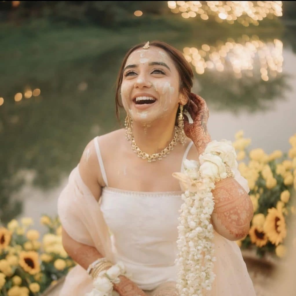हल्दी के लिए प्राजक्ता ने सफेद कुर्ती शरारा को सलेक्ट किया है जिसमें गोल्डन रंग का बॉर्डर भी है. साथ में मैचिंग दुपट्टे में वह बहुत ही प्यारी नजर आ रही हैं.