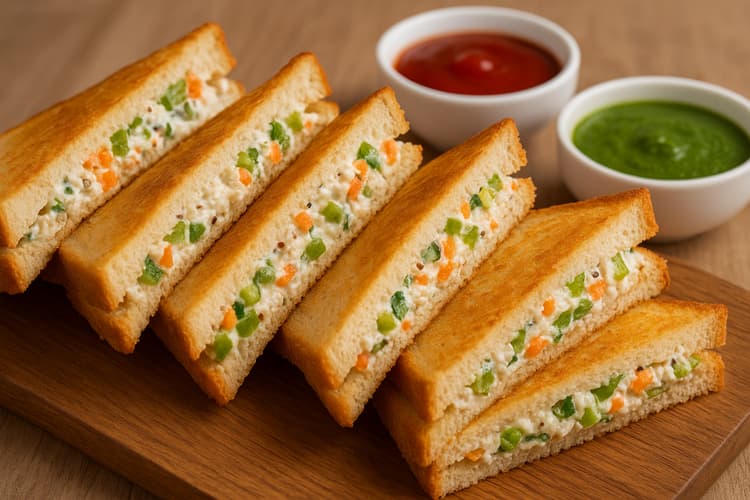 - अगर आप टोस्ट करना चाहते हैं तो तवा या सैंडविच मेकर में हल्का बटर लगाकर दोनों साइड से सुनहरा सेकें. अगर बच्चा सॉफ्ट सैंडविच पसंद करता है तो टोस्ट किए बिना भी दे सकते हैं.
