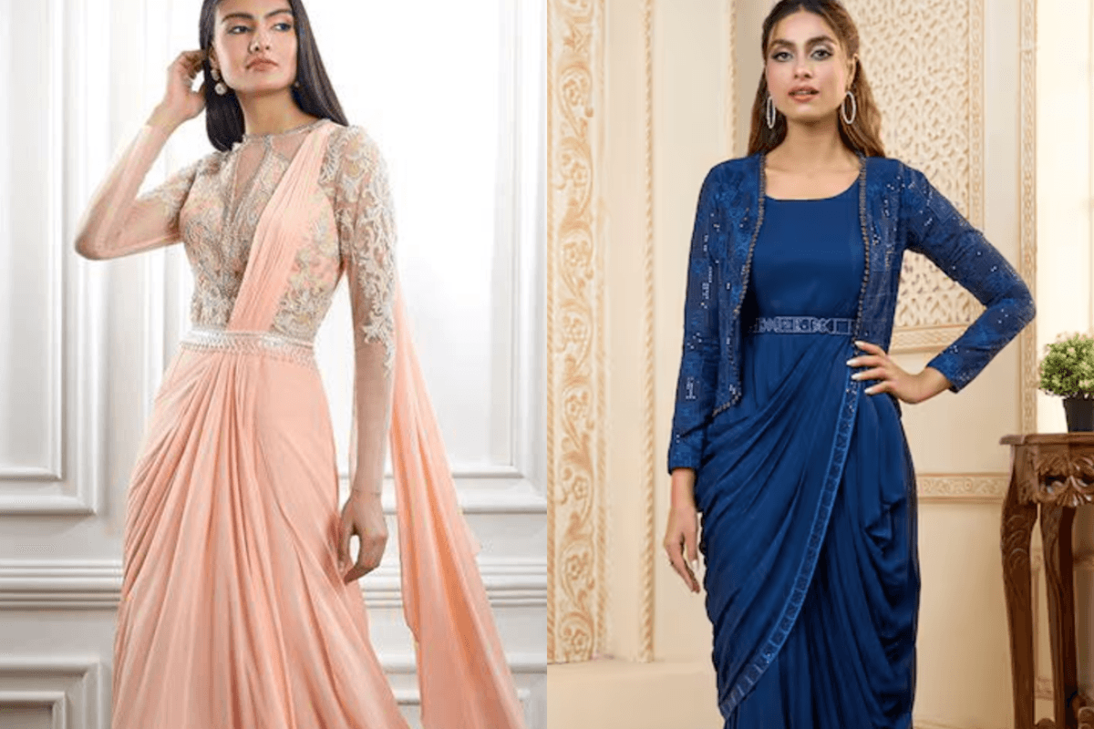 Rakhi Outfit Ideas 2025: ड्रैप स्टाइल साड़ी गाउन