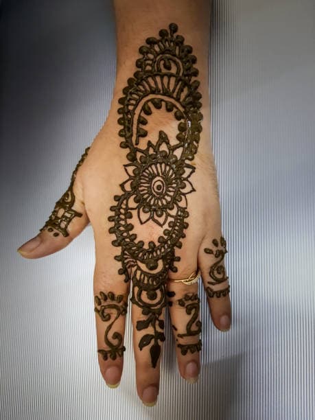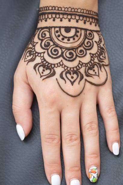इस रक्षाबंधन आप अपने हाथों में ये अरेबिक स्टाइल की मेहंदी भी लगा सकती हैं, अरेबिक स्टाइल की मेहंदी डिजाइन से हाथ आधा कवर होता है, लेकिन बहुत सुंदर नजर आता है. इस प्रकार की मेहंदी डिजाइन में फूल-पत्तों के डिजाइन से प्रभावित बड़े पैटर्न बनाए जाते हैं.
