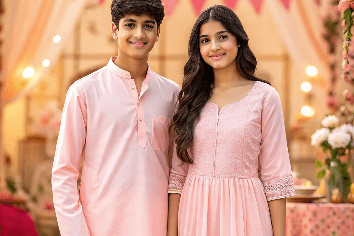 राखी पर पारंपरिक कपड़े हमेशा अच्छे लगते हैं. भाई के लिए सूती या सिल्क कुर्ता-पायजामा और बहन के लिए मैचिंग सलवार सूट या अनारकली सूट चुनें. हल्के रंग या जैसे रंगों के शेड्स में कपड़े लेने से दोनों का लुक सुंदर और मेल खाता लगेगा.