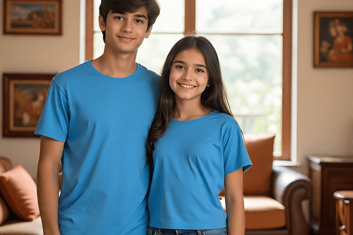 अगर आपको बहुत ज्यादा ट्रेडिशनल पहनावा पसंद नहीं है, तो मैचिंग टी-शर्ट और जींस ट्राय करें. खासकर घर पर राखी मनाने के लिए यह सबसे आरामदायक और कूल ऑप्शन है. एक जैसे रंग या प्रिंट वाली टी-शर्ट पहनकर आप दोनों खूब अच्छी लगेंगे.