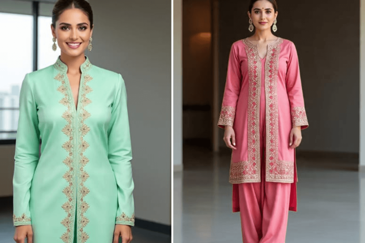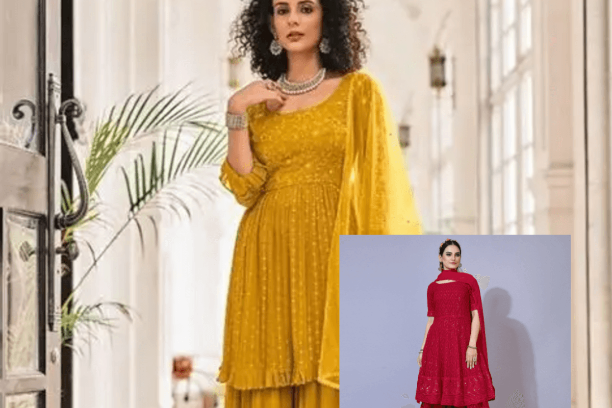 अगर आप कुछ हटके पहनना चाहती हैं. तो कंट्रास्ट कलर में सूट एक अच्छा ऑप्शन है. इस सूट में एम्ब्रॉयडरी जैकेट और कंट्रास्ट कलर का दुपट्टा आपका लुक तुरंत स्टाइलिश बना देगा. इसे हाई हील्स और स्टेटमेंट ईयररिंग्स के साथ पेयर करें.