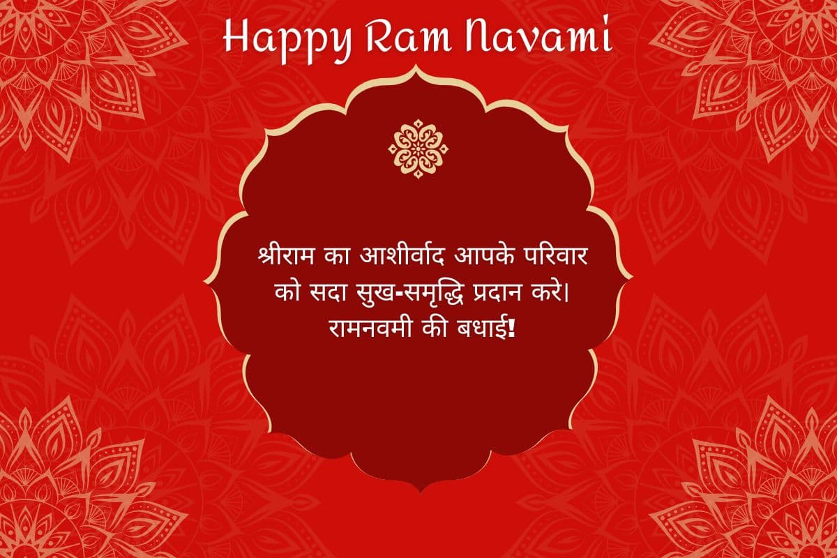 - इस रामनवमी पर भगवान श्रीराम का आशीर्वाद आपके परिवार को सुख, शांति और समृद्धि प्रदान करे. रामनवमी की हार्दिक शुभकामनाएं!