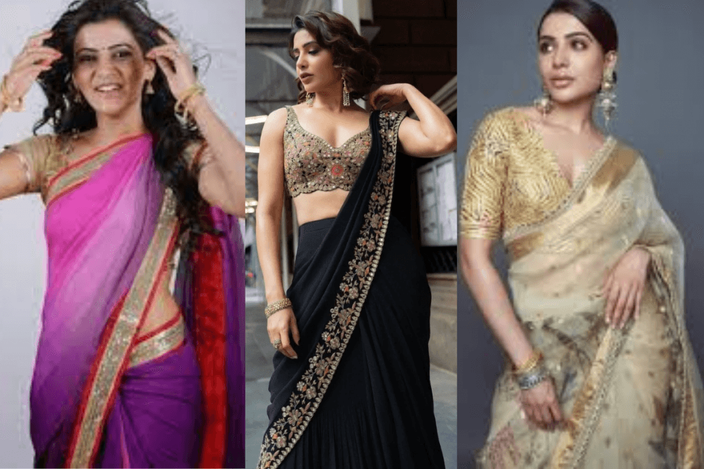 समांथा ने साड़ी पहनने के अपने तरीके को अद्भुत बनाया है. वह अक्सर अपने साड़ी लुक को एक बोल्ड ब्लाउज और एक्सेसरीज़ के साथ पेयर करती हैं. उनकी साड़ी में अक्सर शानदार एम्ब्रॉइडरी और जीवंत रंग होते हैं. अगर आप साड़ी पहनने का सोच रही हैं, तो समांथा की तरह एक अनोखा ब्लाउज और statement ज्वेलरी का चुनाव करें.