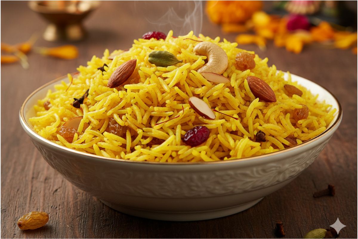 Saraswati Puja Special Recipe: बसंत पंचमी का त्योहार हमारे लिये बेहद खास होता है और इस दिन पीले रंग का विशेष महत्व माना गया है.ऐसे में बसंत पंचमी पर आप भी बसंती पुलाव बना कर मां सरस्वती को भोग लगा कर उन्हें प्रसन्न कर सकती है.बसंती पुलाव को कई लोग केसरिया मीठे चावल के नाम से भी जानते हैं. केसर की खुशबू, देसी घी का स्वाद और सूखे मेवों से भरपूर यह पुलाव न केवल दिखने में आकर्षक होता है बल्कि खाने में भी लाजवाब लगता है.तो इस बार मां सरस्वती को भोग लगाने के लिये आप भी बसंती पुलाव के रेसिपी को ट्राय करिये.