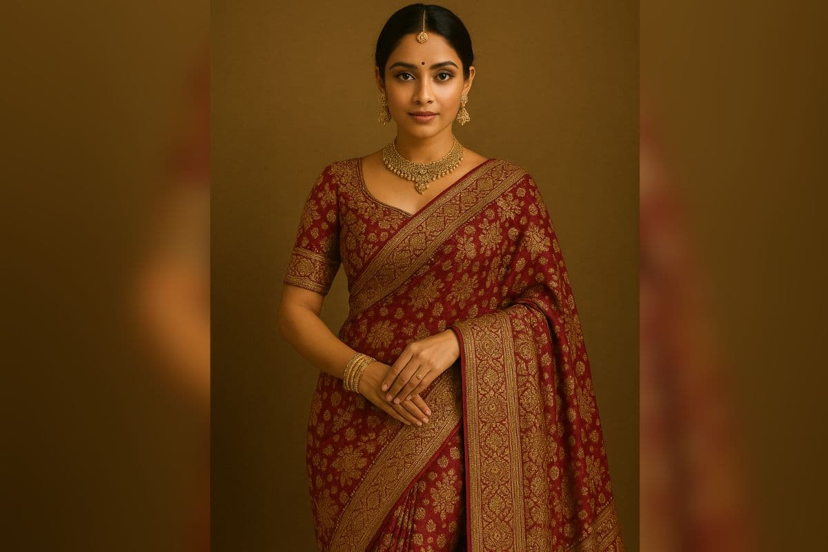 बनारसी साड़ी शादी के फंक्शन के लिए एक बेहतरीन ऑप्शन है. ये रॉयल लुक देता है. रेड और गोल्ड का कांबिनेशन आपके ऊपर अच्छा लगेगा. इसे आप मिनिमल गोल्ड ज्वेलरी के साथ पेयर कर सकते हैं. नई दुल्हन के ऊपर भी ये लुक काफी जचेगा.