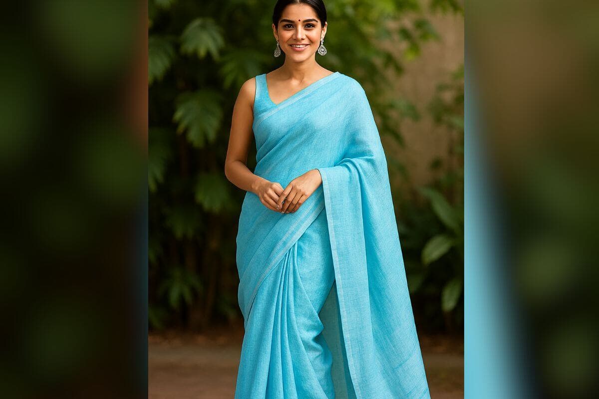 लिनेन कि साड़ी भी इस मौसम के लिए एक परफेक्ट ऑप्शन है. आप इसमें अलग रंग की साड़ी को ट्राई कर सकते हैं. ओकेजन के अनुसार आप हेयर स्टाइल करें.
