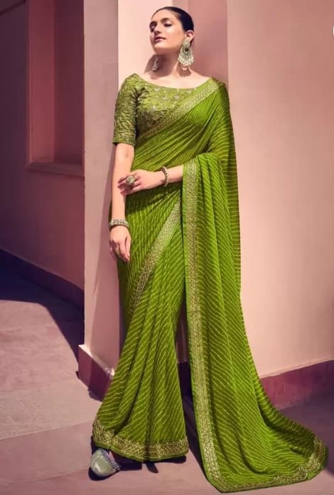ग्रीन शिफॉन साड़ी