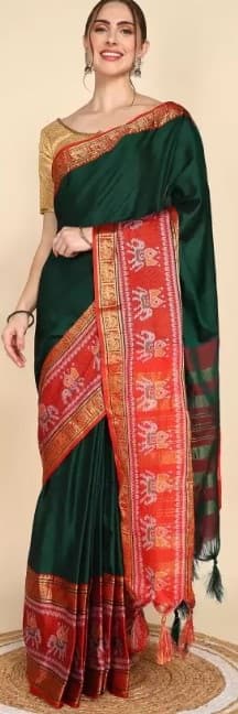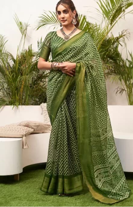 कॉटन की ग्रीन साड़ी
