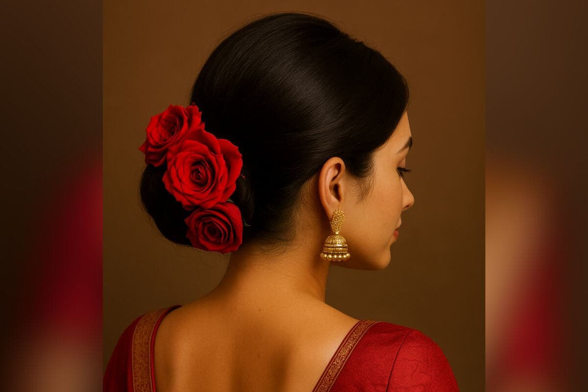 आप सावन में बन हेयर स्टाइल को बना सकते हैं. स्लीक लो बन आपको एक फैशनेबल लुक देगा. आप इसके साथ रोज यानी गुलाब के फूल लगाकर अपने लुक को कंप्लीट करें.