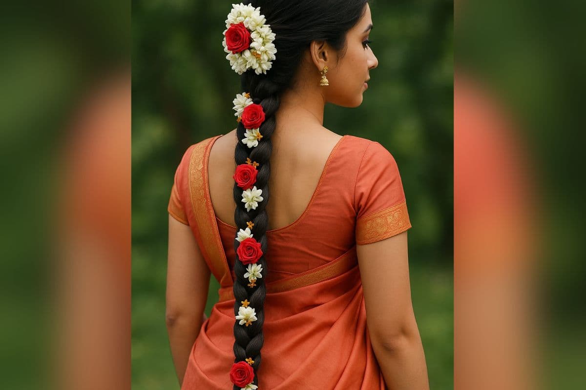 सावन में आप सिंपल सी ब्रेड बना सकते हैं और इसे फूल से सजा सकते हैं. इसके साथ आप एलिगेंट ज्वेलरी के साथ एक शानदार लुक पाएं.