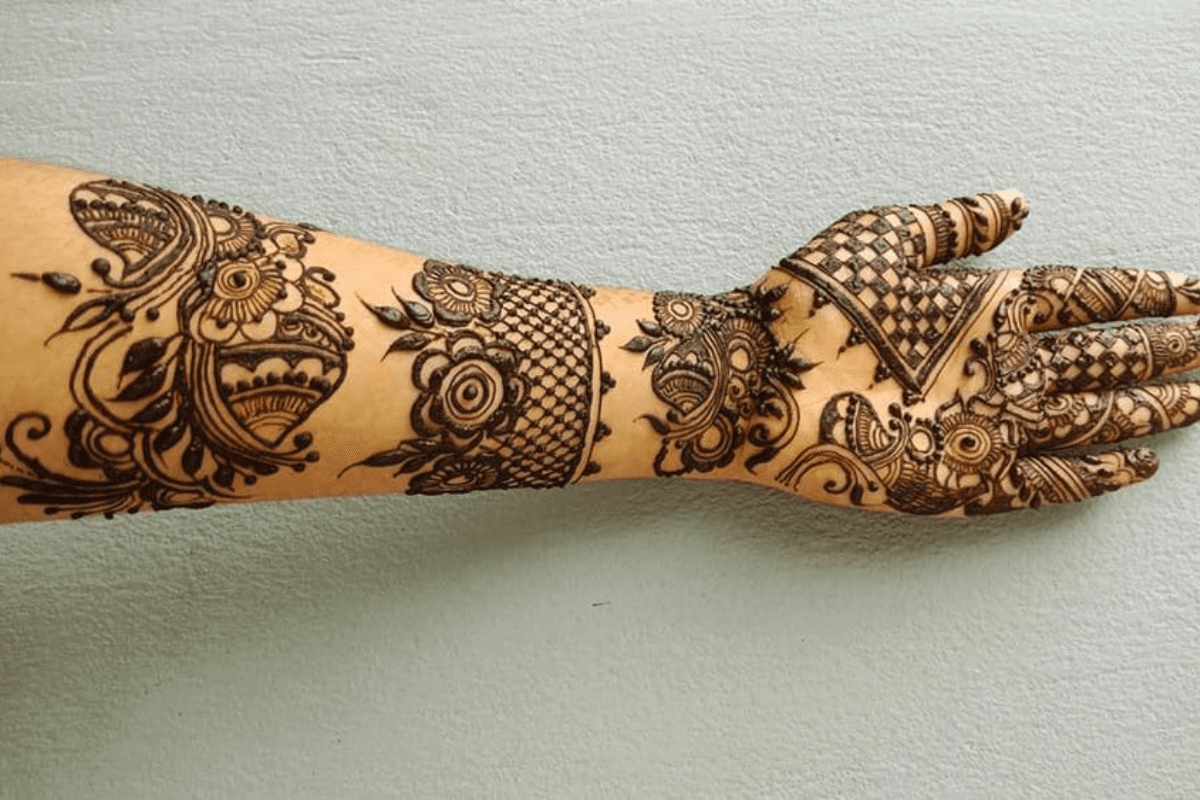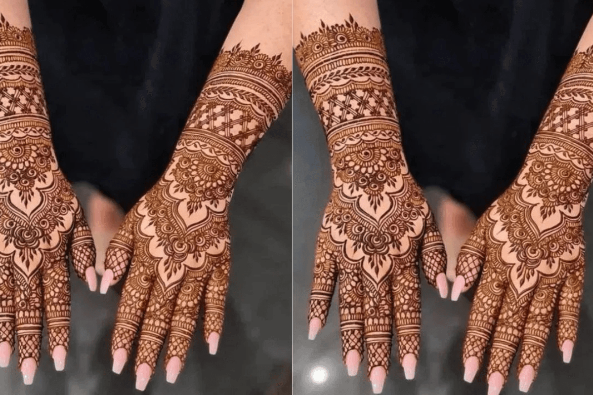 तीज के लिए महिलाएं फुल हैंड मेहंदी लगाना पसंद करती हैं. इसमें पारंपरिक पैटर्न और भराव होता है. यह खासकर शादीशुदा महिलाओं के लिए पसंदीदा डिजाइन है. त्योहार में इसका अलग ही चमक होता है.