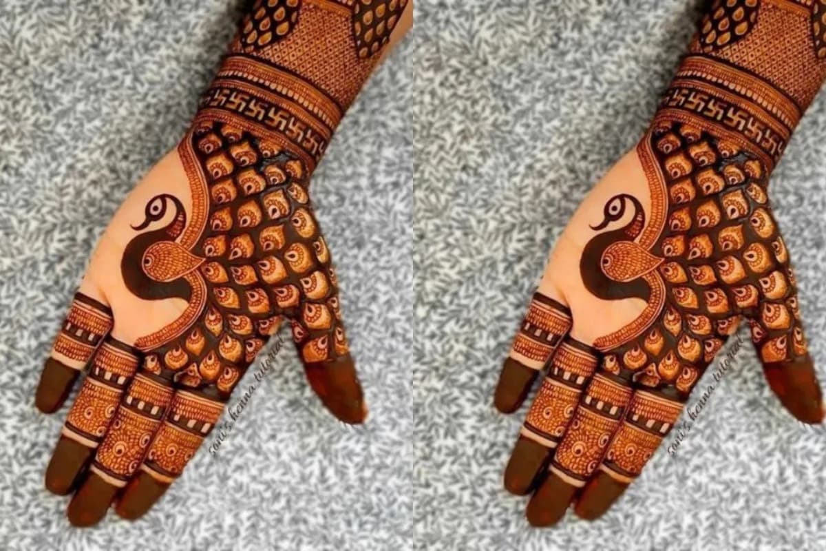 सावन और तीज में मोर को शुभ माना जाता है, इसलिए इसका डिजाइन बहुत पसंद किया जाता है. इसमें मोर की गर्दन और पंख बहुत सुंदर तरीके से बनाए जाते हैं. यह मेहंदी हाथों को खास और शाही लुक देती है. यह डिजाइन पारंपरिक त्योहारों के लिए एकदम सही है