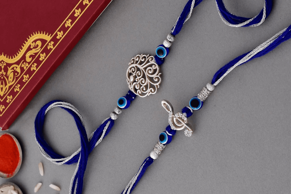 सिल्वर राखी में अगर ईविल आई बीड्स लगे हों तो यह बहुत ही खास लगती है. ये बीड्स नजर और बुरी ताकत से रक्षा करते हैं. साथ ही, यह राखी फैशनेबल और आकर्षक भी लगती है.