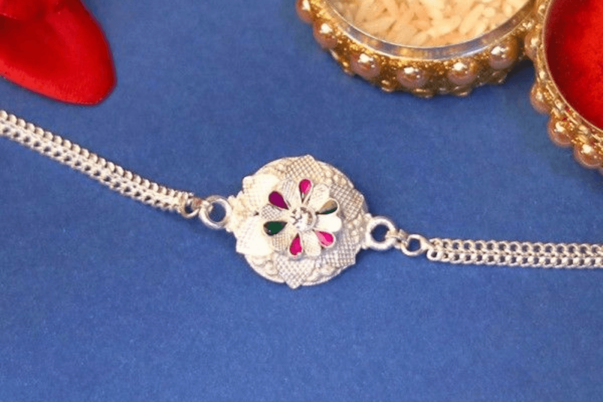 ब्रेसलेट जैसा दिखने वाला सिल्वर राखी उन भाइयों के लिए अच्छा है जो गहने पहनना पसंद करते हैं. इसे राखी के बाद भी कलाई पर पहना जा सकता है. यह राखी स्टाइलिश होने के साथ टिकाऊ भी होती है.