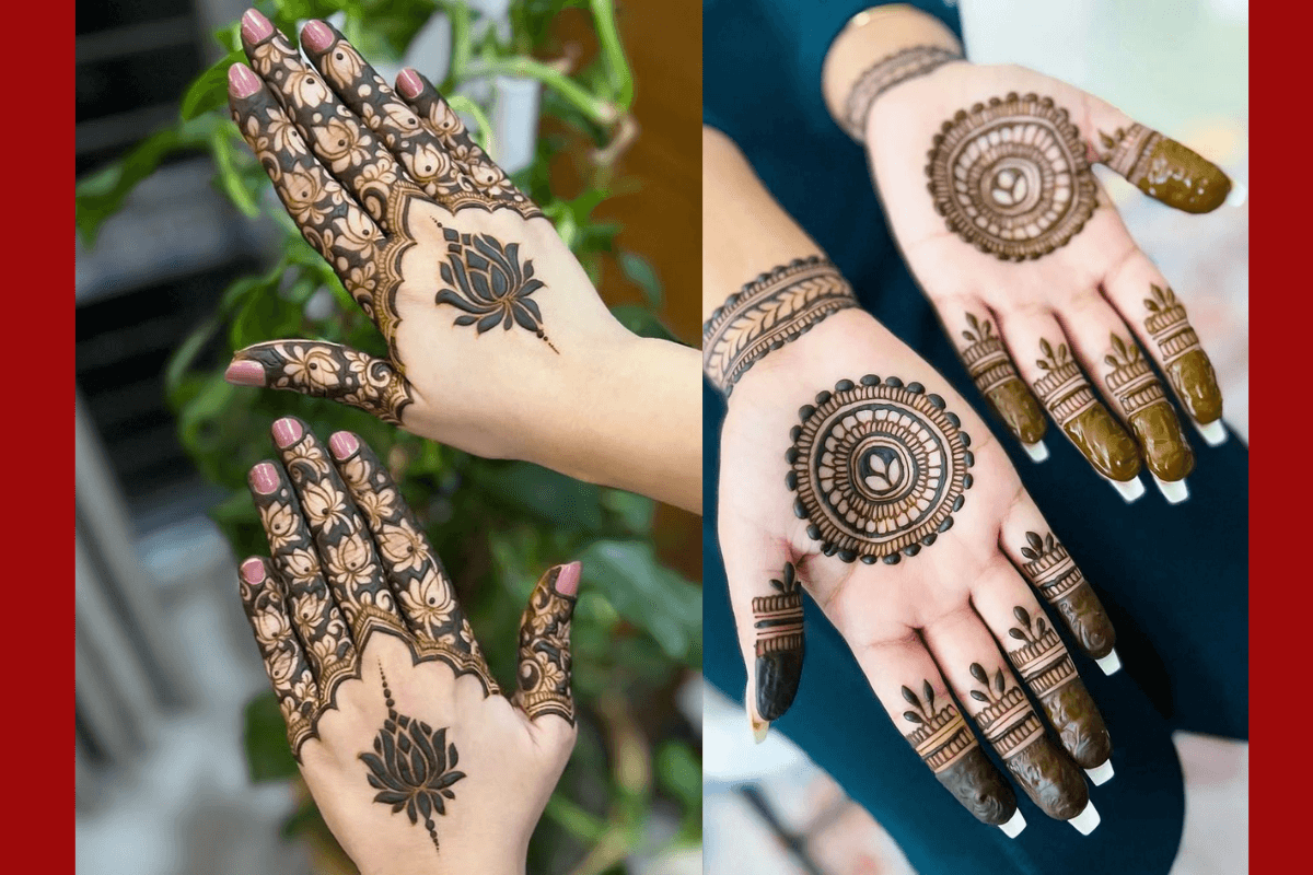 कमल का फूल शुभता और पवित्रता का प्रतीक है. इस डिजाइन में हथेली के बीचों-बीच या हाथ के पीछे कमल का फूल बनाया जाता है, जिसके चारों ओर बेल और पत्तियां सजाई जाती हैं. यह बेहद रॉयल लुक देता है.