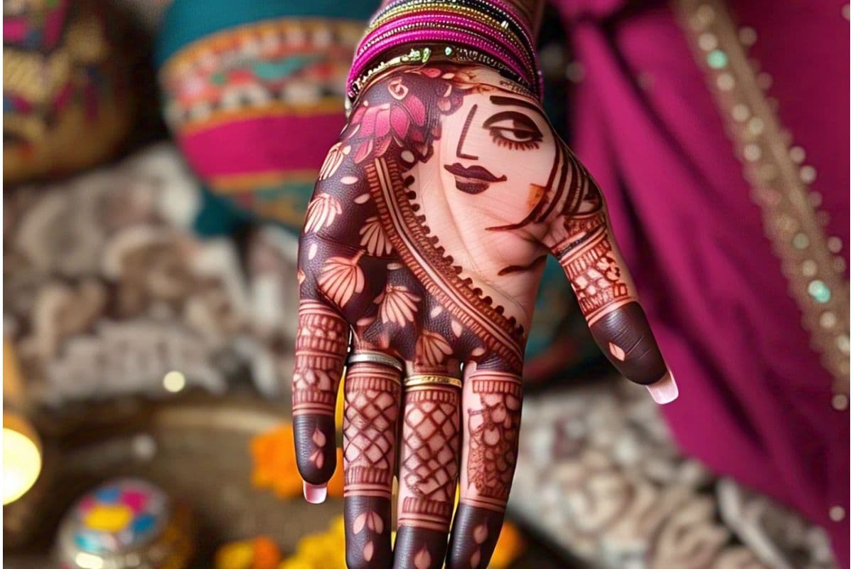 टिक्की डिजाइन में हथेली के बीच में एक गोल या अंडाकार आकृति बनाई जाती है और उसके आसपास छोटे-छोटे मोटिफ्स बनाए जाते हैं. यह डिजाइन बहुत ही पारंपरिक और सुंदर लगता है और इसे बनाना भी आसान होता है.