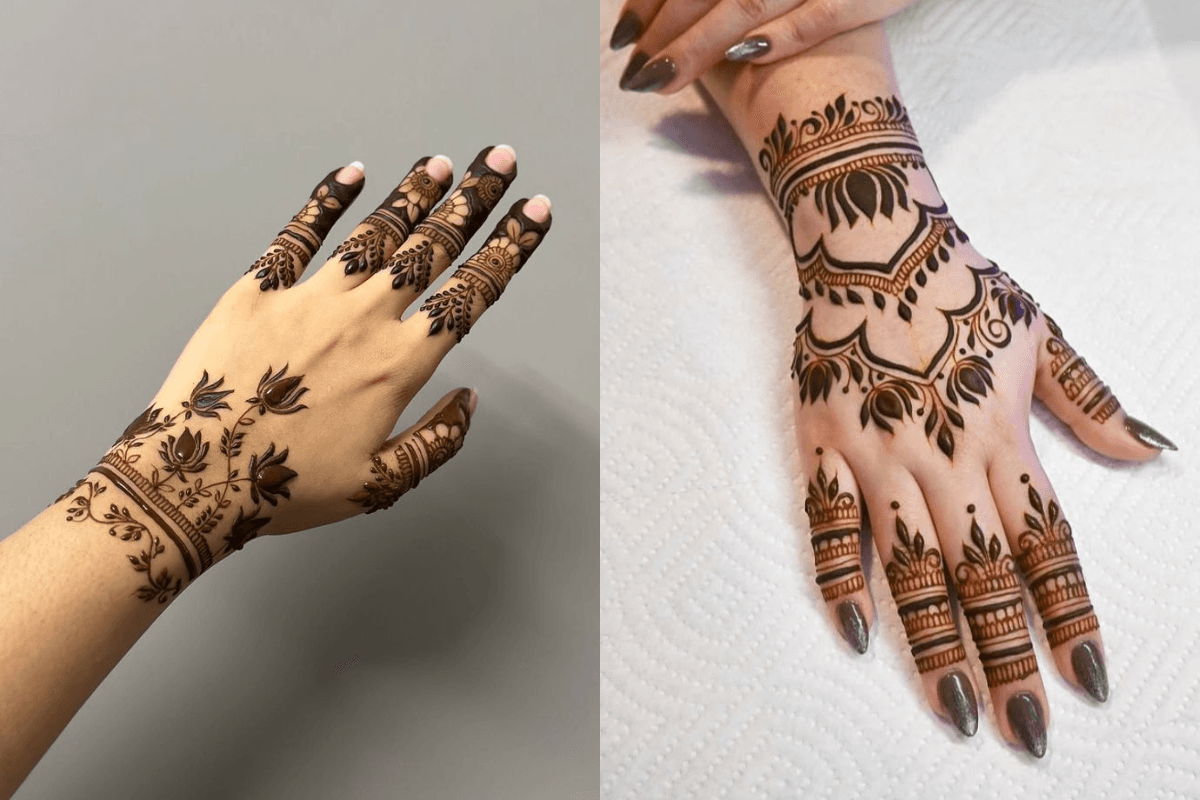 फूलों से सजा यह डिजाइन क्लासिक के साथ-साथ मॉडर्न टच भी देता है. इसे फ्रंट और बैक दोनों हाथों पर लगाया जा सकता है. इसमें बड़ी-बड़ी पंखुड़ियों और बेलों का उपयोग कर सुंदरता बढ़ाई जाती है.