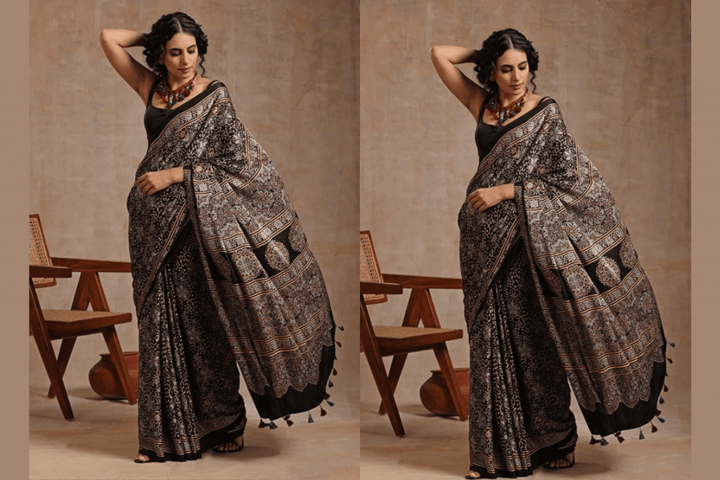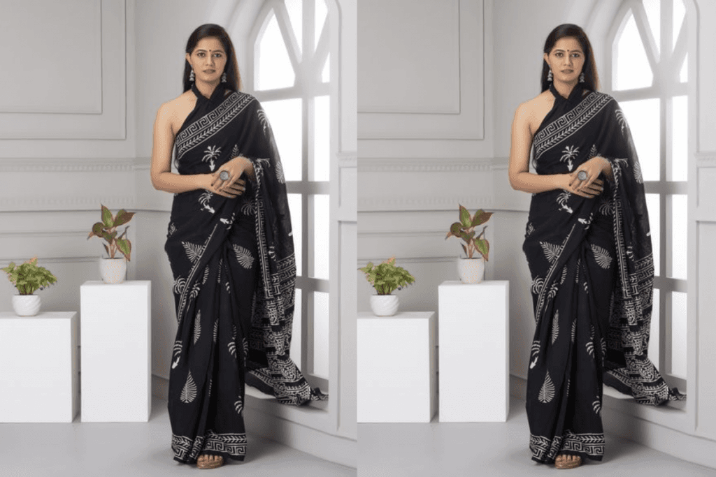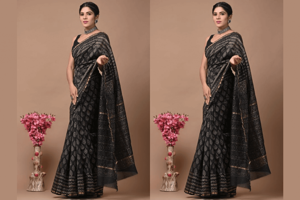3. ब्लैक हैंडलूम साड़ी (Black Handloom Saree)