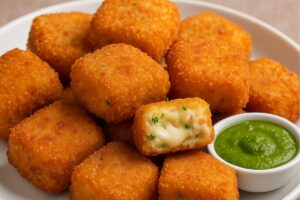 - अब आपकी क्रिस्पी और टेस्टी चीजी सूजी बाइट्स बनकर तैयार है. इसे टोमैटो केचअप, मेयो डीप या हरी चटनी के साथ सर्व करें और गरमागरम एंजॉय करें.