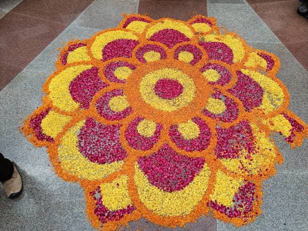 शिक्षक दिवस के कार्यक्रम के लिए आप फूलों से भी रंगोली डिजाइन बना सकते हैं. इस प्रकार की रंगोली बनाने में आसान होती है और एक फ्रेश लुक के साथ बहुत अच्छी लगती है. अगर आप इस प्रकार की रंगोली डिजाइन बनाना चाहते हैं तो सही रंगों के फूलों का चयन करना सबसे महत्वपूर्ण प्रक्रिया होगी.