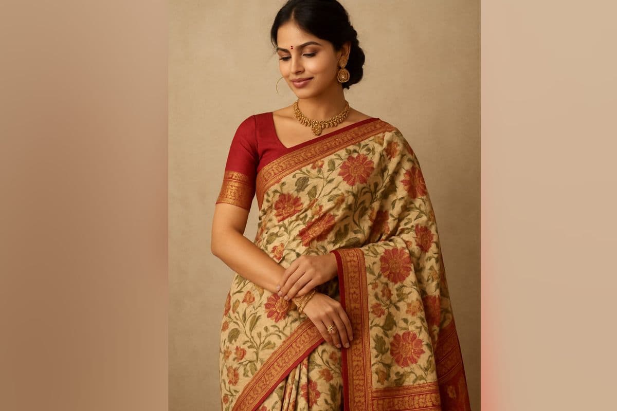 कॉटन साड़ी हल्के रंग और जिसमें सुंदर प्रिंट हो को आप जरूर इस खास मौके पर पहने. ये साड़ी आरामदायक भी होगी और शानदार लुक भी देगी. आप अपने लुक को और भी बेहतरीन बना सकती हैं ज्वेलरी की मदद से.