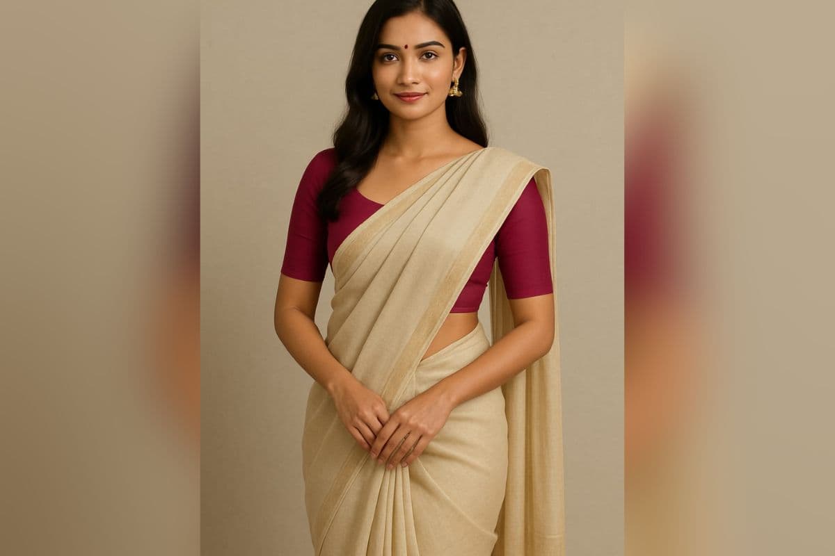 प्लेन साड़ी कॉन्ट्रास्ट ब्लाउज के साथ