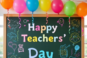 ब्लैकबोर्ड पर आकर्षक डिजाइन बनाने के लिए रंग-बिरंगे क्रेयॉन और चॉक का इस्तेमाल करें. आप फूल, हार्ट, और सितारों के छोटे-छोटे पैटर्न बना सकते हैं. इसके साथ “हैप्पी टीचर्स डे” जैसे संदेश लिखें. यह सजावट बहुत ही खूबसूरत दिखती है.