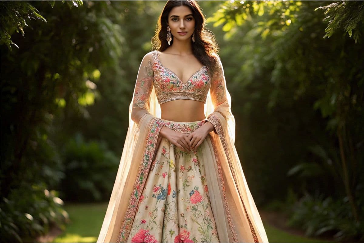 फ्लोरल प्रिंटेड लेहेंगा: फूलों के प्रिंट्स हमेशा से ही तीज के लिए पसंद किए जाते हैं. हल्के पेस्टल या ब्राइट कलर के फ्लोरल लेहेंगा आपके लुक को फ्रेश और एलिगेंट बनाएंगे.
