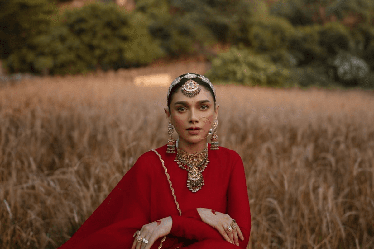 हल्का घूंघट डालकर नीचे देखते हुए फोटो देना पारंपरिक और खूबसूरत लगता है.