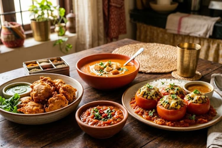 Tomato Recipe Ideas: टमाटर का खट्टा-मीठा स्वाद किसी भी डिश को खास बना देता है. आमतौर पर टमाटर का इस्तेमाल सब्जी, सलाद, दाल या ग्रेवी बनाने में किया जाता है. आप टमाटर का इस्तेमाल करके अलग-अलग रेसिपी बना सकते हैं. इस आर्टिकल में आप टमाटर से बनने वाली रेसिपी के बारे में जान सकते हैं.