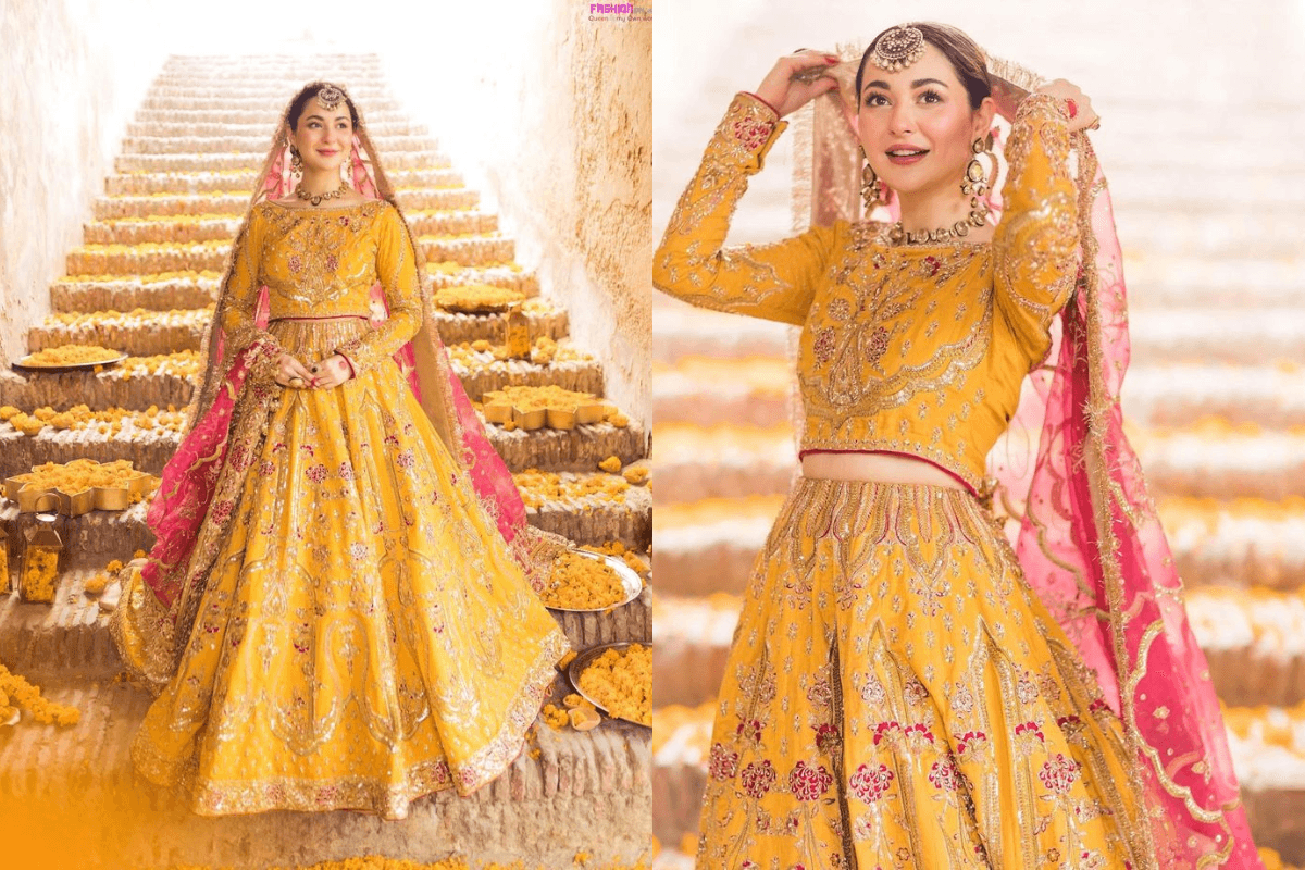 10. Hania Amir Yellow Lehenga: येलो फेस्टिव लहंगा लुक